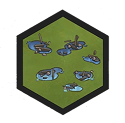 Dieses niedrig gelegene Gebiet am Fluss wurde noch nicht überschwemmt und beginnt das Spiel daher mit dem gleichen Ertrag wie ein flaches Grasland-Geländefeld. Falls der Fluss erneut über die Ufer tritt, könnten Bauwerke auf diesem Geländefeld beschädigt oder zerstört werden, das Geländefeld wird jedoch wahrscheinlich auch höhere Erträge bringen.