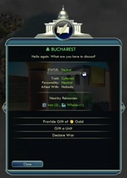 - Militar- A cidade vai te dar regularmente uma unidade de ataque (com as apropriadas tecnologias e caso vocês forem aliados ou amigos, pode-se pedir para parar de te dar;