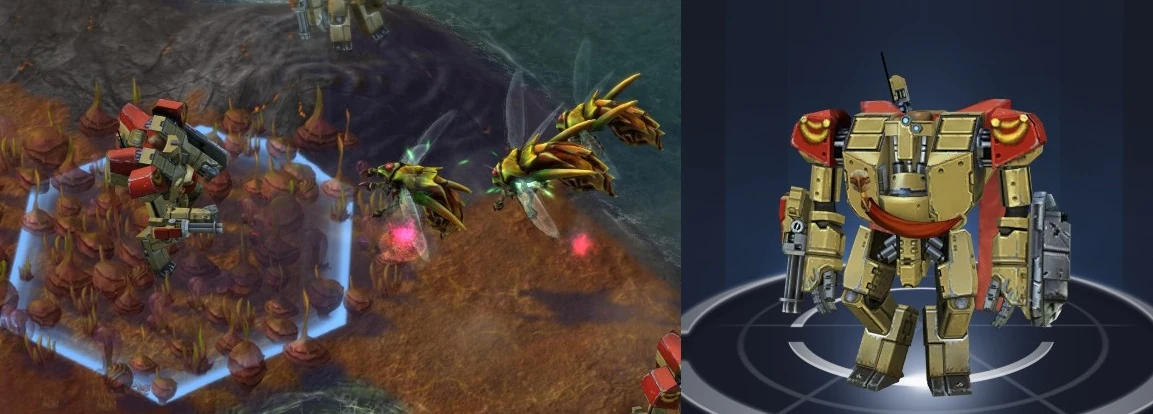 The Aegis is a multipurpose ranged unit, possessing good ranged power with which to pummel enemies from behind the line of Battlesuits. Its main advantage appears when it upgrades to Tier 2 - the Aegis gains a second attack, which automatically doubles its firepower on the battlefield. In addition to that, the Aegis gains an aura that aids nearby troops healing, which makes it a great support unit.