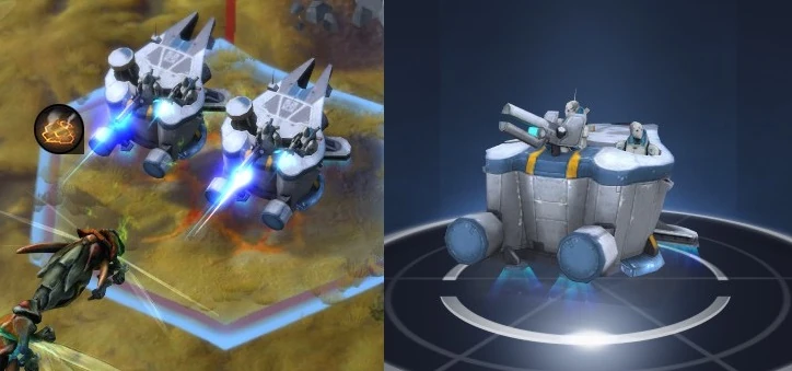 An Autosled attacking (left) and its upgrade pose (right)