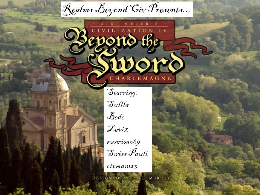 The Charlemagne scenario of Civilization IV: Beyond the Sword designed by Paul Murphy simulates the competition for the title of Holy Roman Emperor in the Medieval era. There are five playable kingdoms (civs) in this game: Charlemagne (Austrasia), Gundobad (Burgundy), Chilperic I (Neustria), Eleanor (Aquitaine) and Alboin (Lombardy). (Note that any of these kings can be crowned Holy Roman Emperor, even though historically Charlemagne was the Holy Roman Emperor; hence the name of the scenario.) There are also six unplayable civilizations: the Romans (led by His Holiness), the Byzantines (led by Justinian), the Arabs (led by Saladin), the Anglo-Saxons, the Bavarians, and the Saxons.
