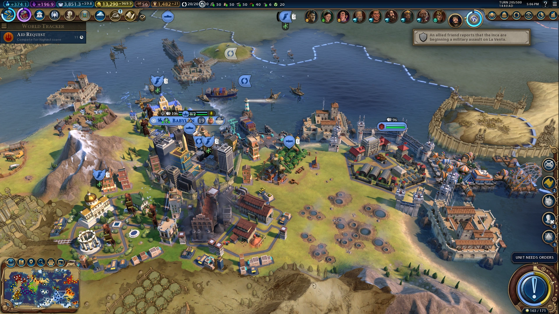 With some planning, luck and sufficient coastline, 4 Feitorias are built in Babylon.