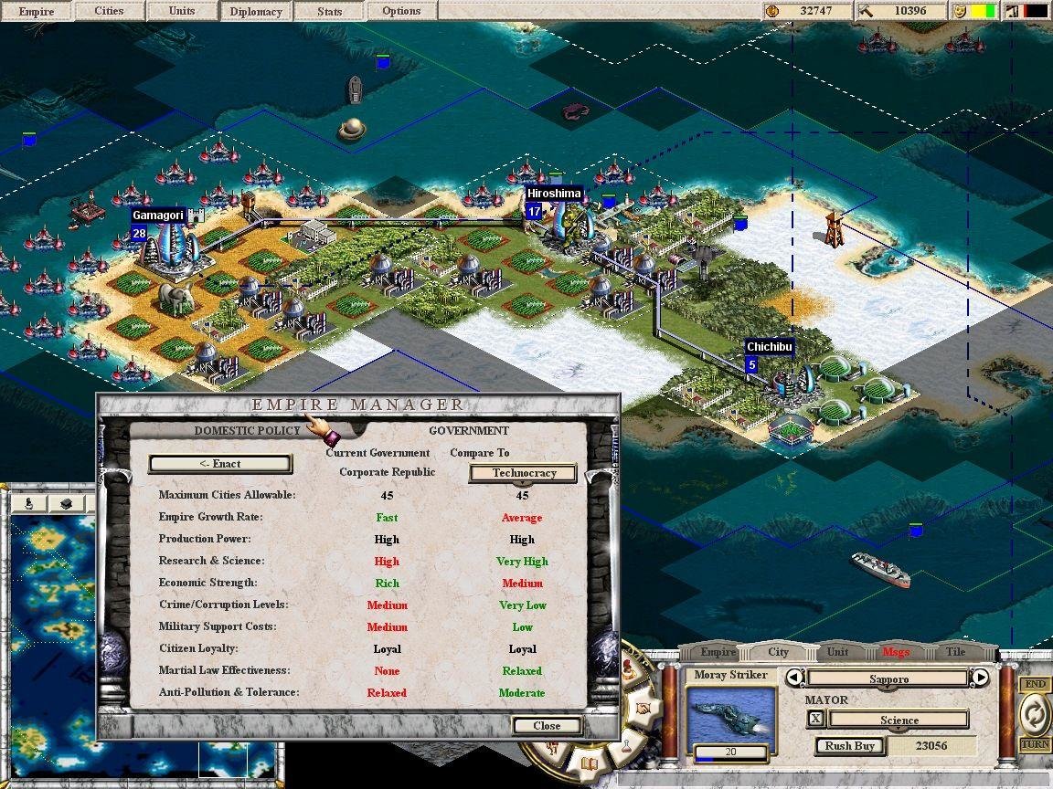 A player comparing Corporate Republic to Technocracy
