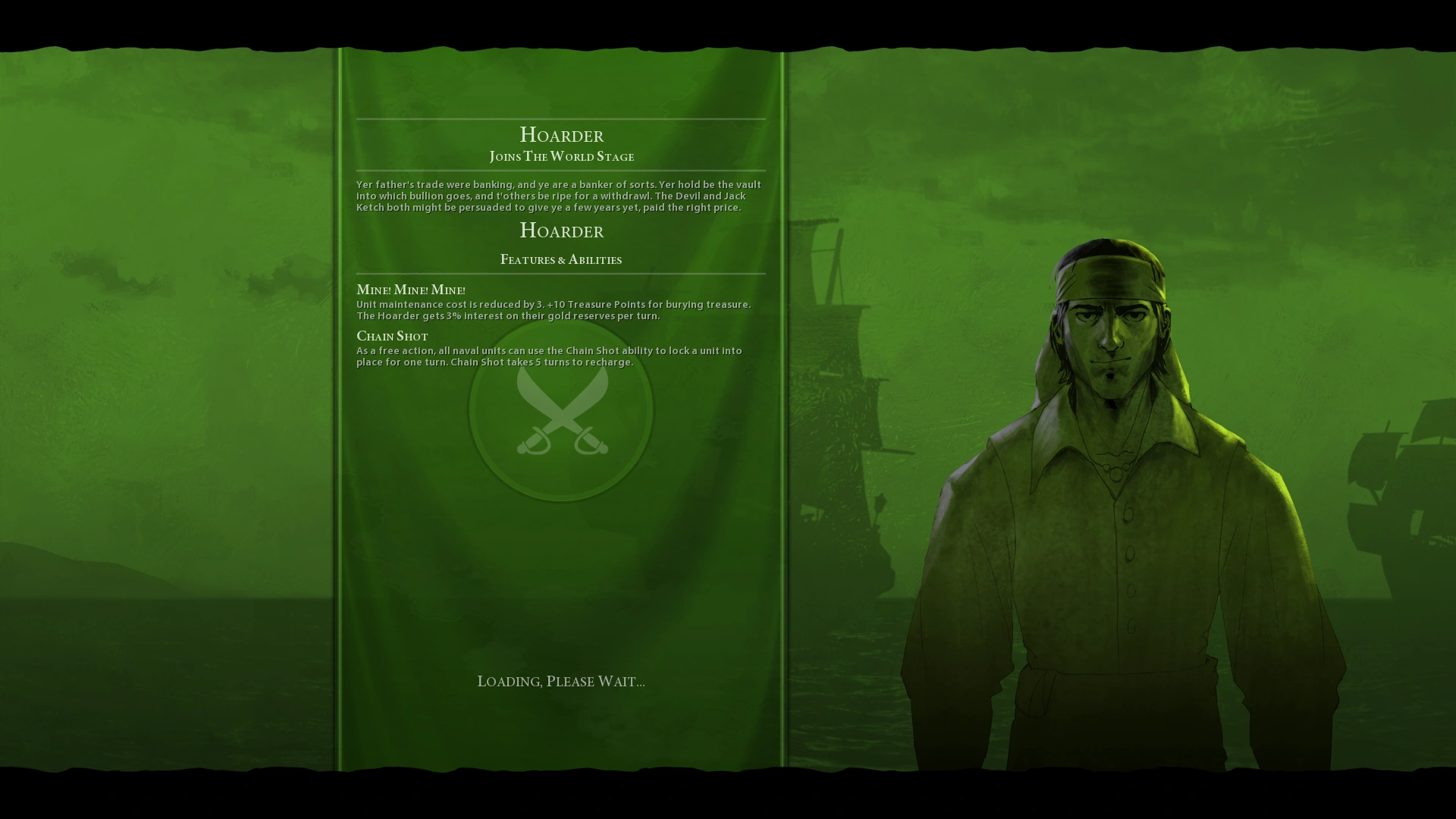 Gold and Infamy. Takes 5 turns to recharge.) - Passive Ability: Letters of Marque (All ports owned by your patron civilization are permanently revealed to you. Gain extra 100